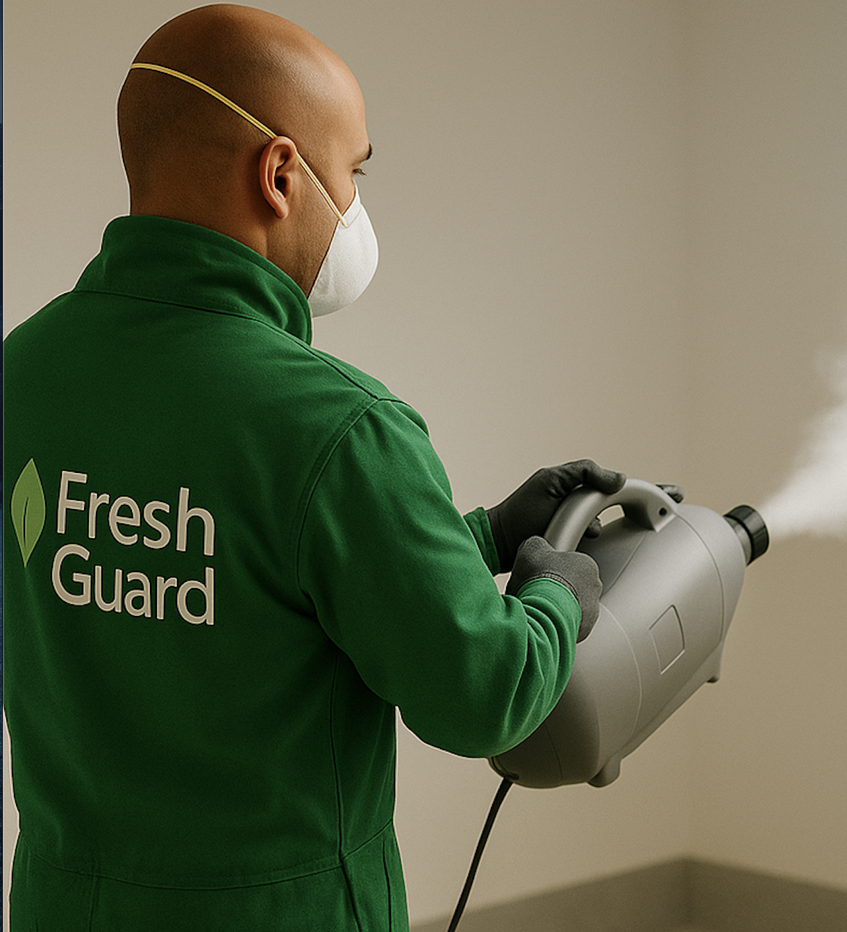 FreshGuard biedt professionele droogvernevelingsoplossingen voor bedrijven die behoefte hebben aan snelle, effectieve en conforme omgevingshygiëne met minimale verstoring van de bedrijfsvoering. Met behulp van EU-goedgekeurde antimicrobiële technologie desinfecteren we complete ruimtes – inclusief lucht en moeilijk bereikbare plekken – om mensen, bezittingen en reputatie te beschermen.